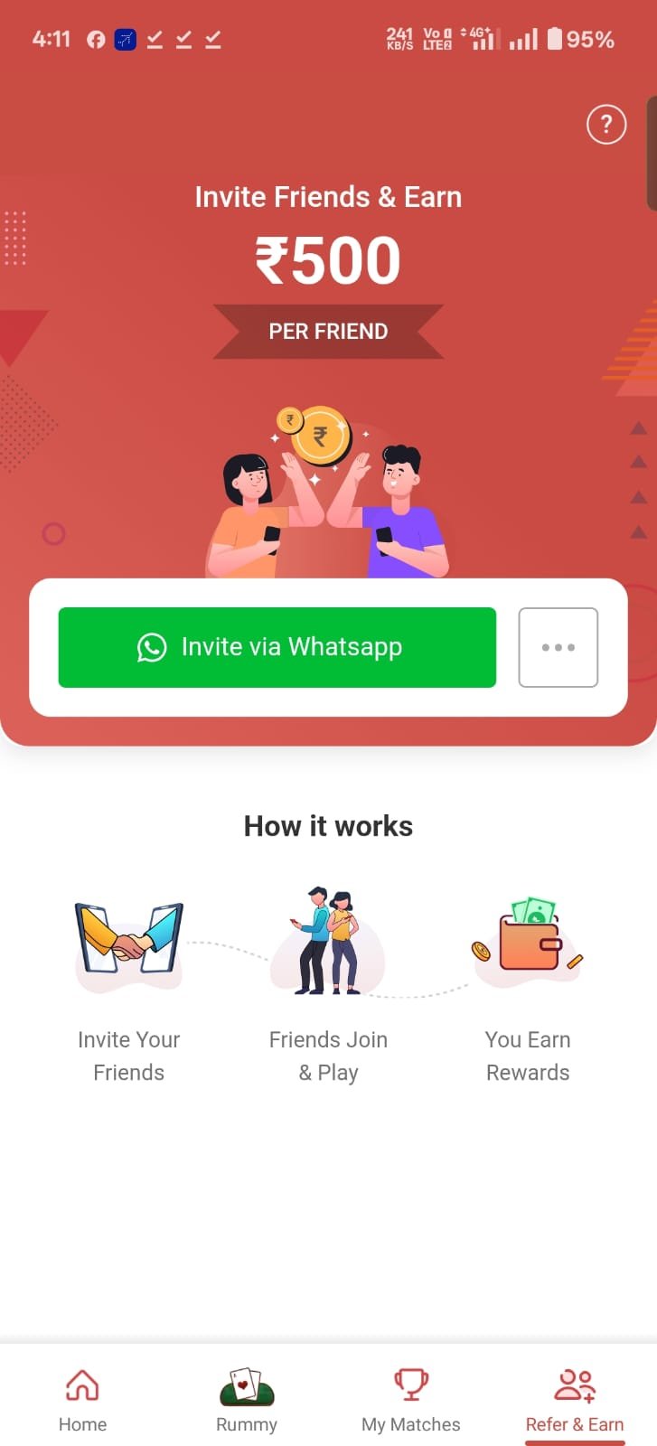 4. इसमें आपको फ्रेंड रेफ़र पर 500 ₹ मिलते हैं।