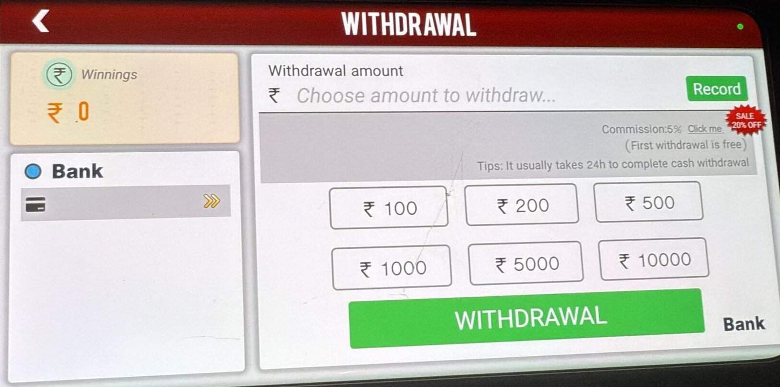 आपको Teen Patti Refer Earn Application में निचे Withdraw का Option मिलेगा उसपर Click करके आप Winning Amount Withdrawal कर सकते हो। ओर एक जरूरी सूचना Fast Time Withdrawal करने पर कोई भी Tex नही कटेगा फिर आप जभी Cash Withdraw करेगे तो आपके Amount का 5% प्रतिसत Tex Commission कटेगा। अब निचे दिएगए Step Follow करे।