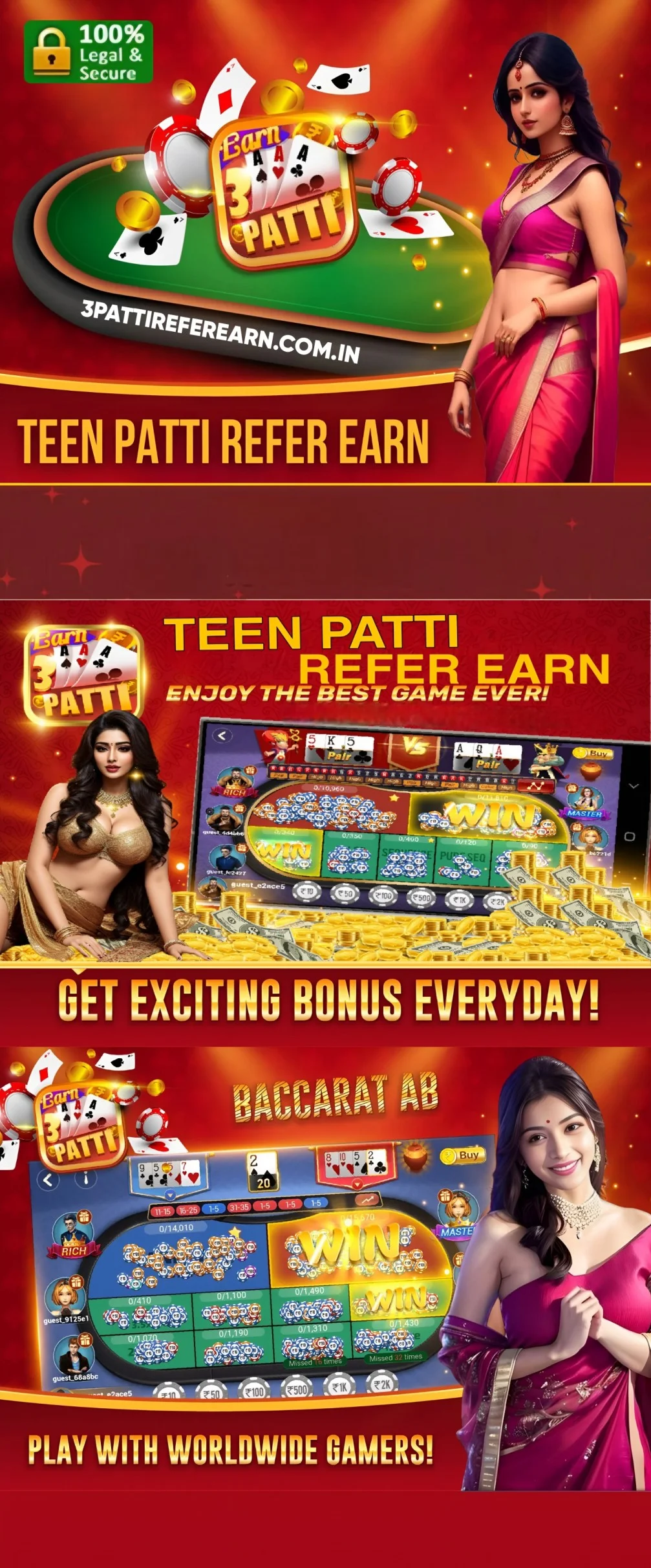 3Patti Refer Earn Apk Notice -: दोस्तो एक जरूरी सूचना अभी तक Teen Patti Refer Earn Mod या,Teen Patti Refer Earn Hack Apk या,Teen Patti Refer Earn Hack या फिर 3Patti Refer Earn Mod Apk इसी कोईभी Apps Available नही है तो अपना Time Vest ना करते हुए सीधा Download Button पर Click करे और Teen Patti Refer Earn Real Cash App Download करे।